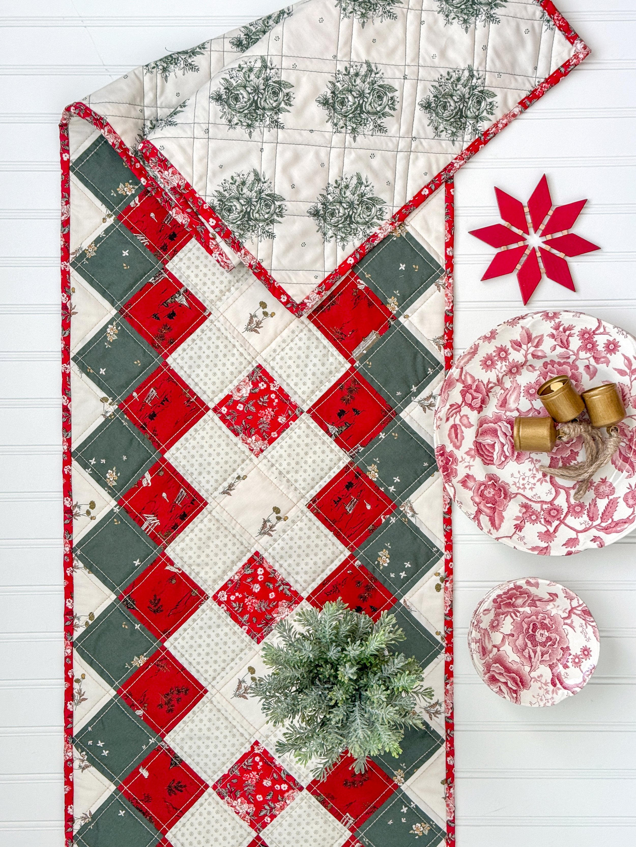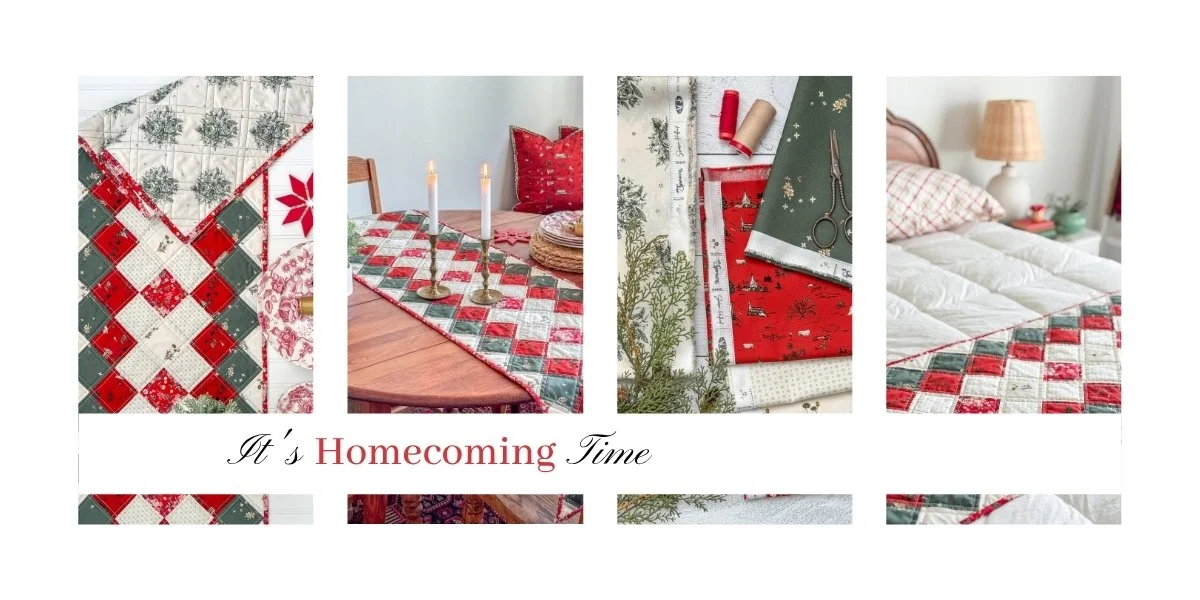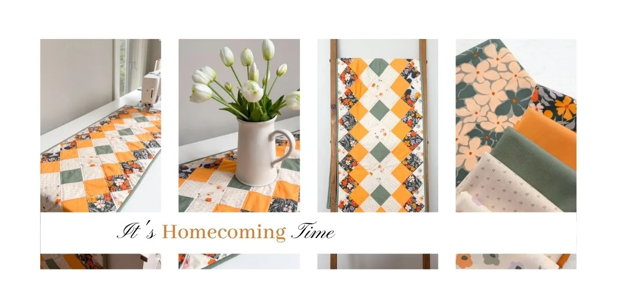 The pattern for the Homecoming table runner is sold separately from my website Shop. Click HERE to purchase the pattern.