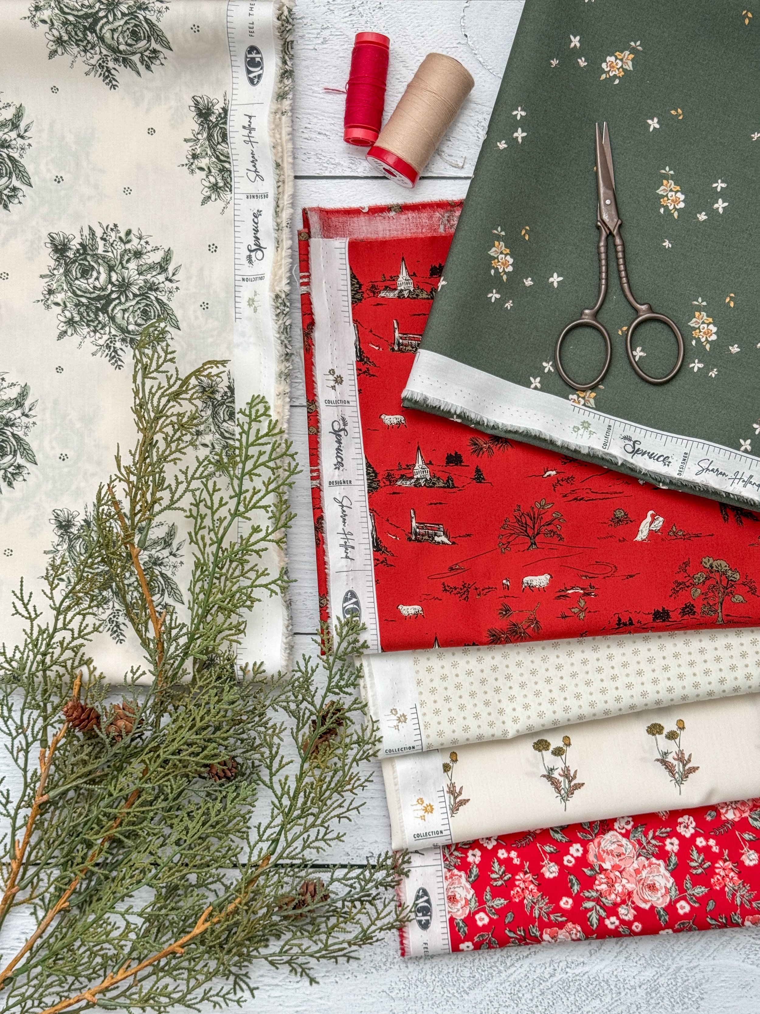 My new Spruce collection for Art Gallery Fabrics is now arriving at your favorite fabric shops, and I know you’ll be eager for sewing inspiration to make the most of this cozy, winter-ready collection—even though Christmas is still eight months away—it's never too early to start planning your holiday sewing projects. Whether you're thinking gifts, decor, or quilts these fabrics are perfect for bringing a festive, handmade touch to the season.