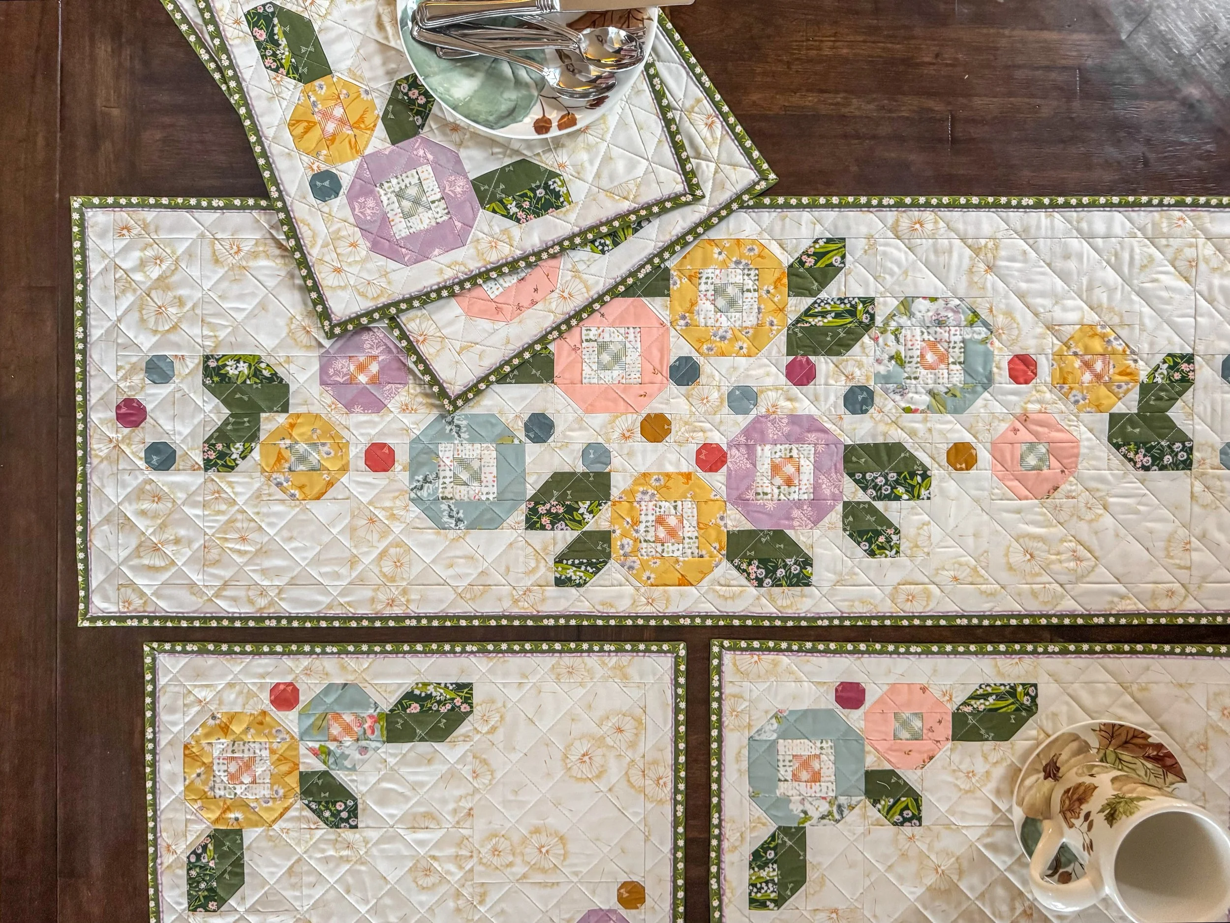 The Posies Table Runner and Placemats pattern was designed by Robin Pickens.