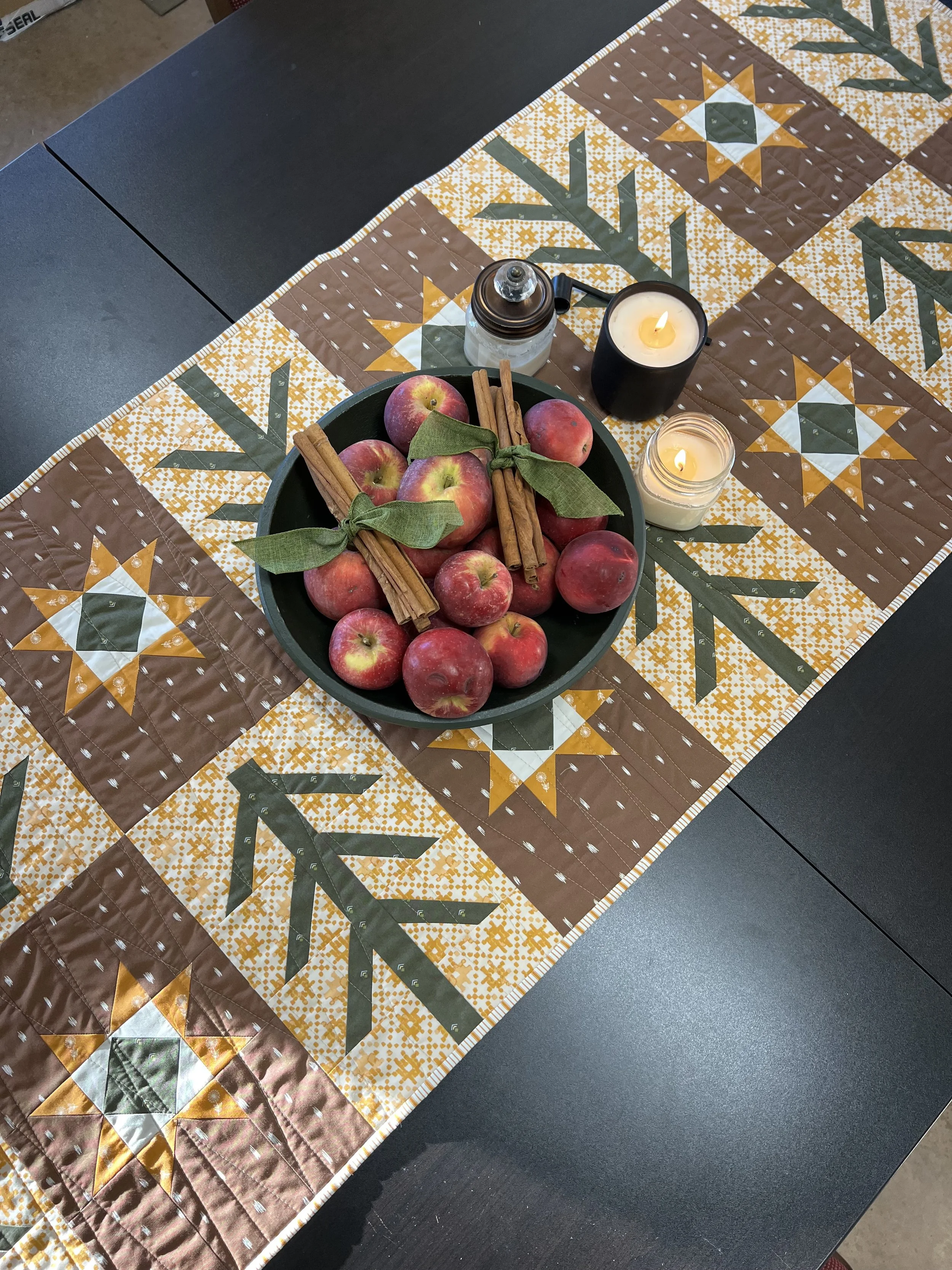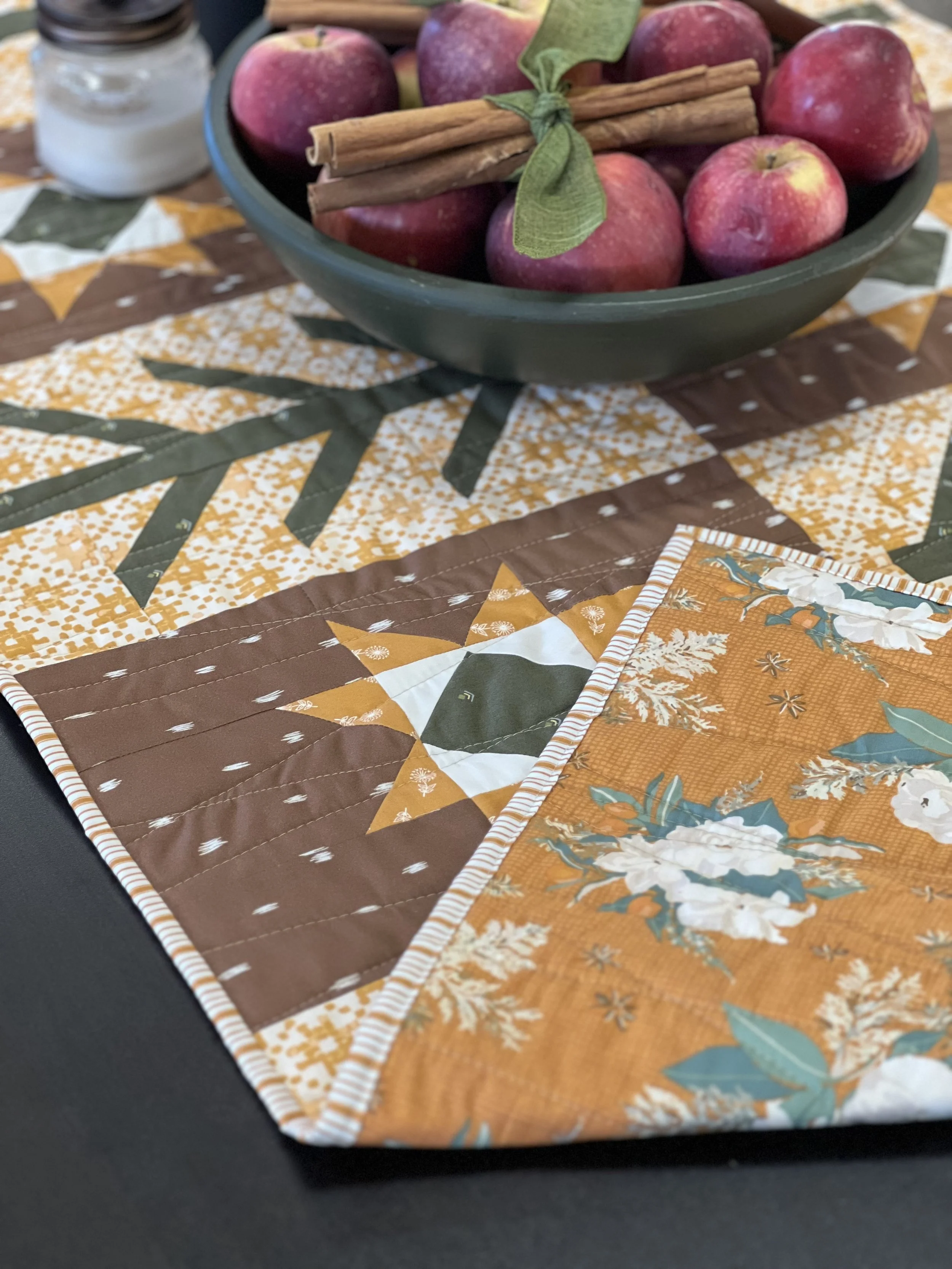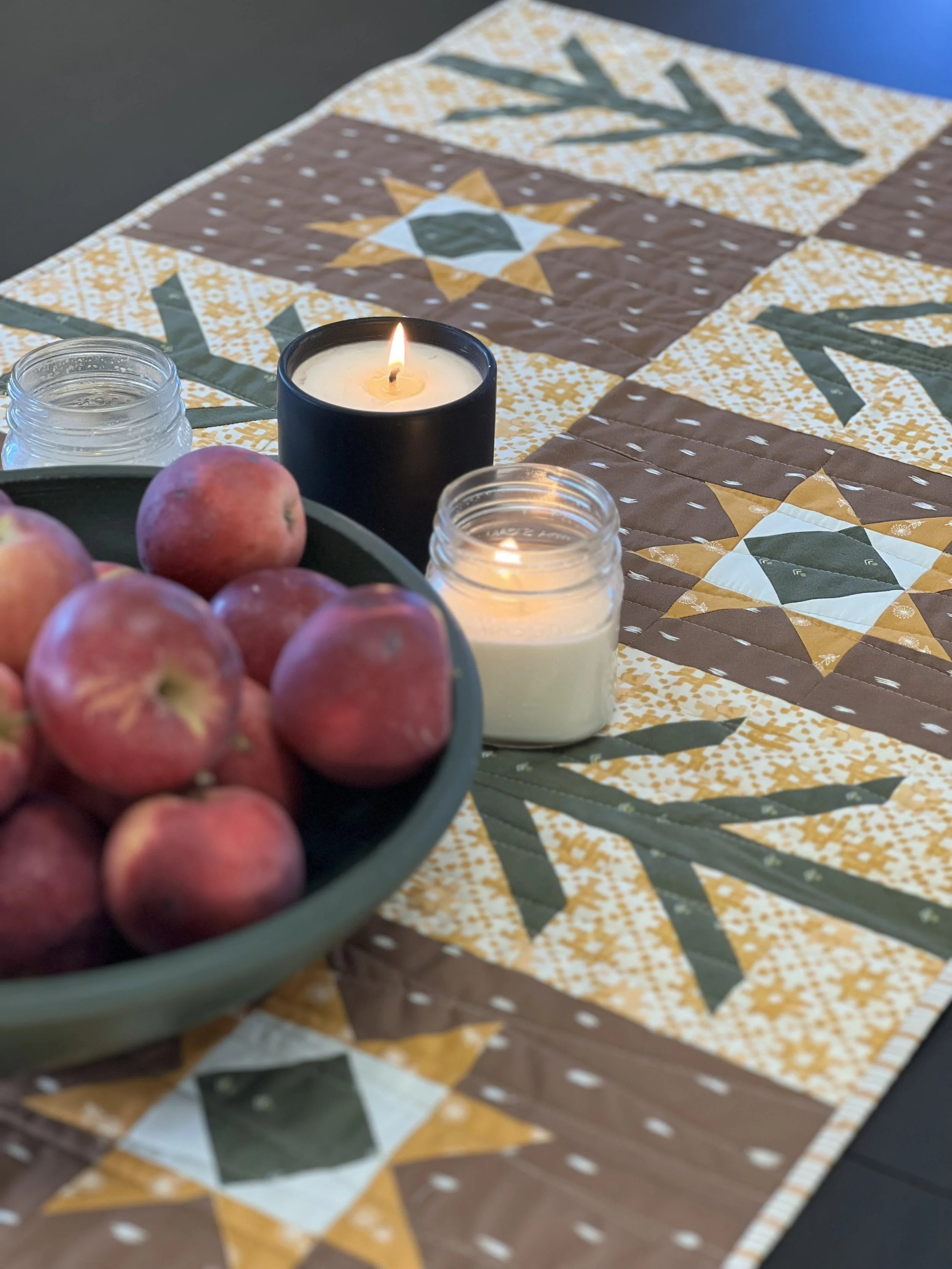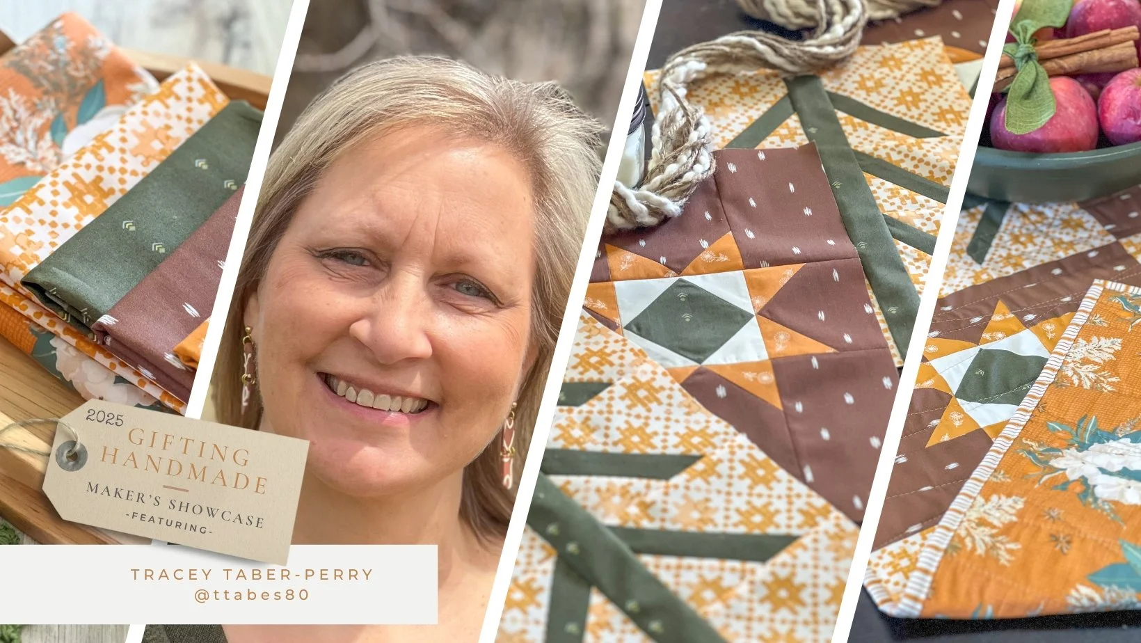 On Day 12 of the Gifting Handmade Maker’s Showcase, Tracy Taber-Perry brought all the cozy cabin-vibes home with her table runner make in assorted fall prints from my Art Gallery Fabrics Juniper, Shine On, and Heirloom collections. This talented maker can be found on Instagram, HERE @ttabes80 to see more of her beautiful makes.