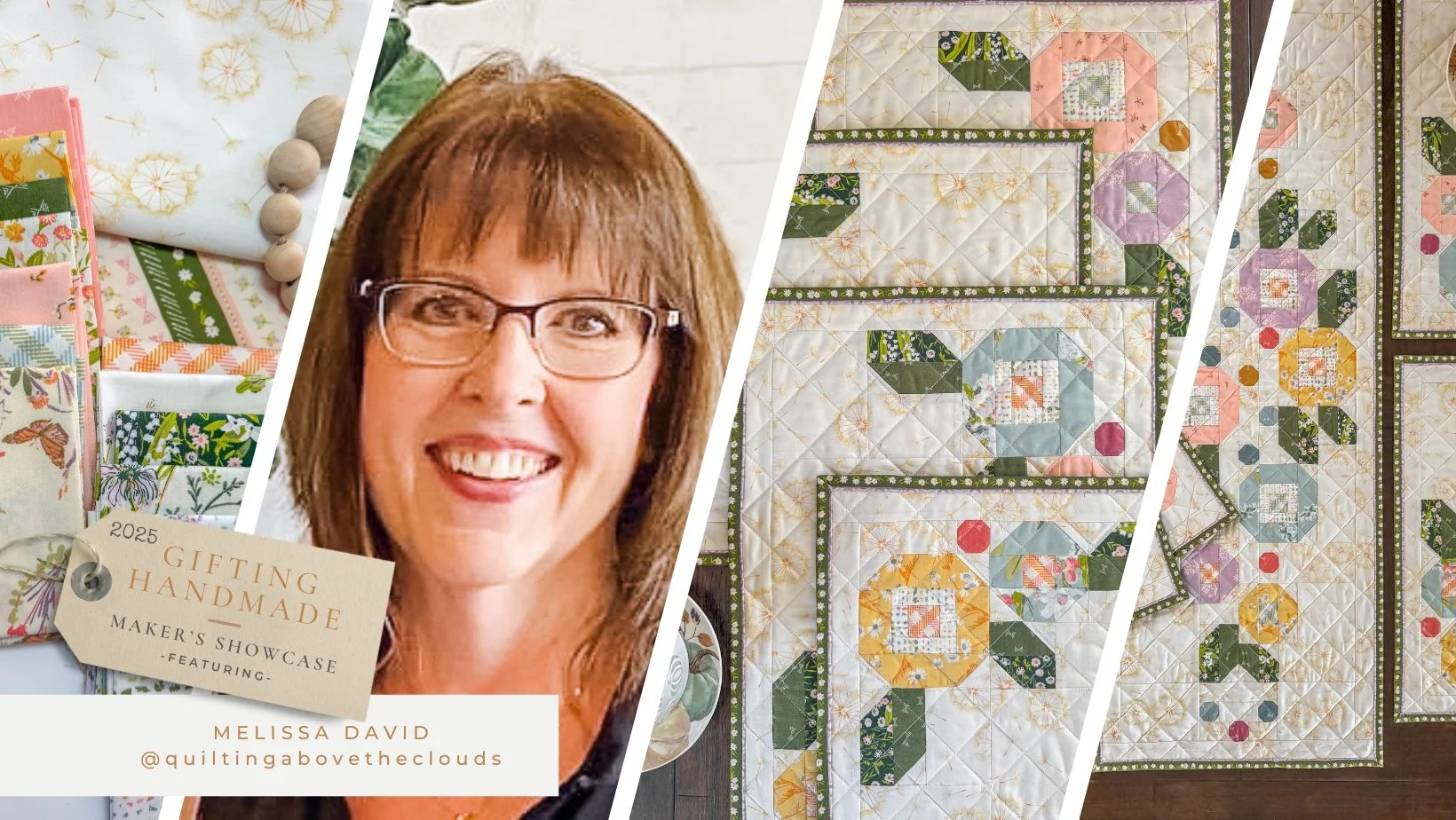 On DAY 9 of the Gifting Handmade Maker’s Showcase, Melissa David of @quiltingabovetheclouds on Instagram charmed us with a beautiful patchwork table runner and matching placemats in prints from my Art Gallery Fabrics Midsummer and Fanciful blender collections.