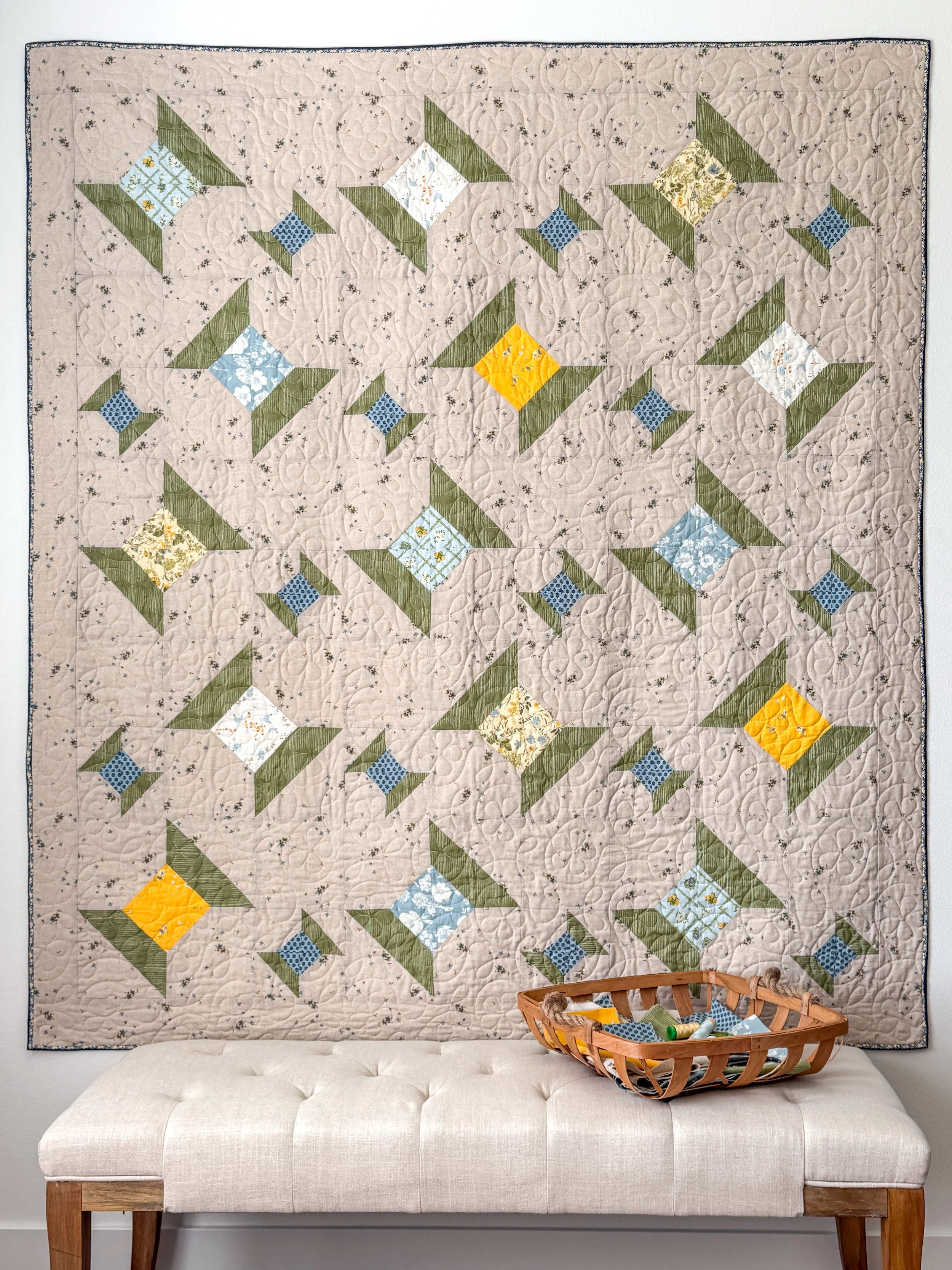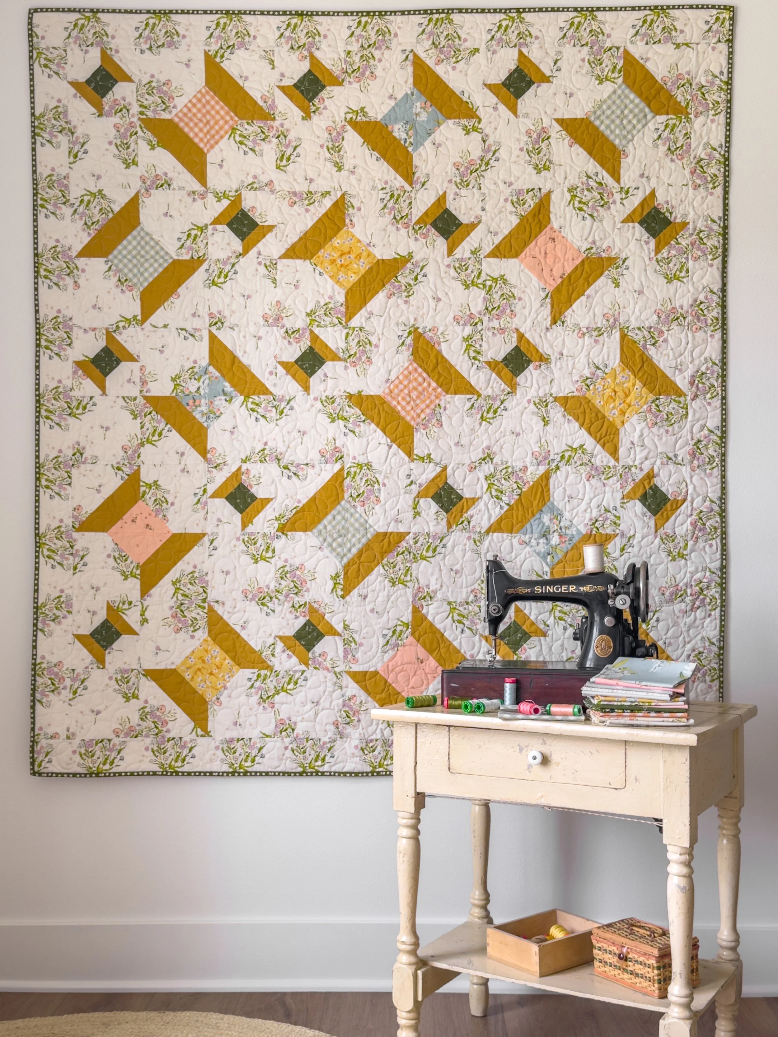 The Midsummer fabric collection for Art Gallery Fabrics and my Aurifil Midsummer Stitching thread set were the inspiration behind the beginner-friendly quilt design.