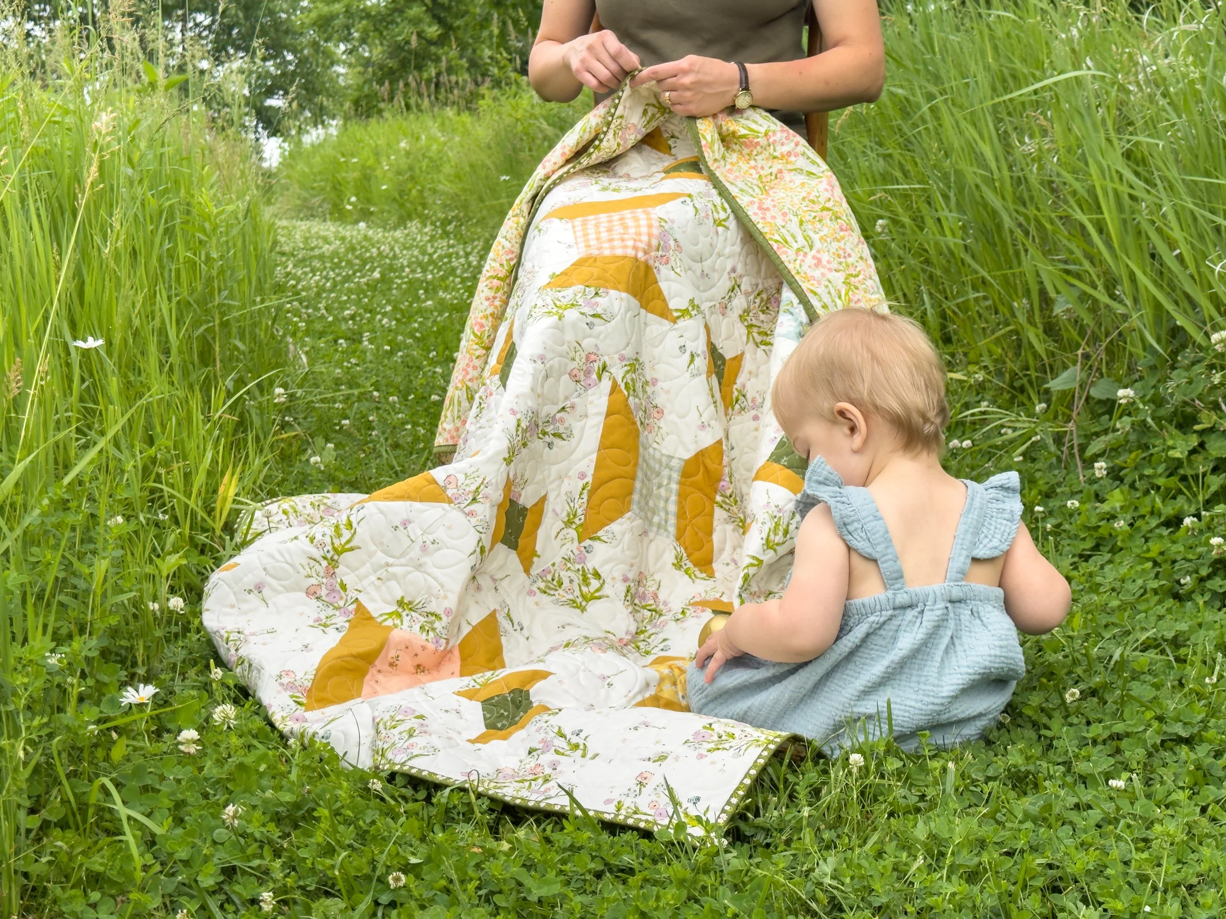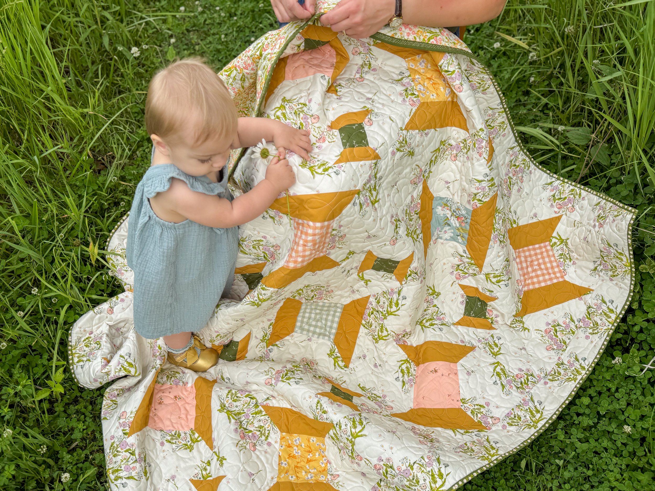 This throw quilt, especially with the retro dandelion floral background, has a playful vintage style that brings a cheerful, nostalgic charm and a touch of whimsy to your home. It would make an especially sweet Mother’s Day gift for the woman who inspired your love of sewing and creativity.