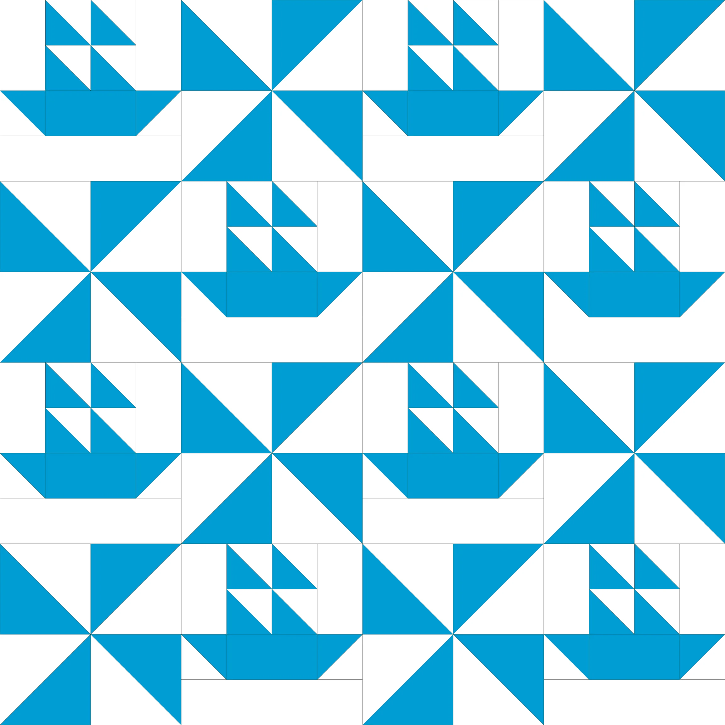 Alternating the Ship block with a Flags block creates a whole new look and stretches the number of triangle sets needed. Don't forget to think about adding sashing, turning a block on-point, alternating with other blocks or just solid pieces of material or making a "strippy" quilt or simply doing a sampler quilt of many different blocks.