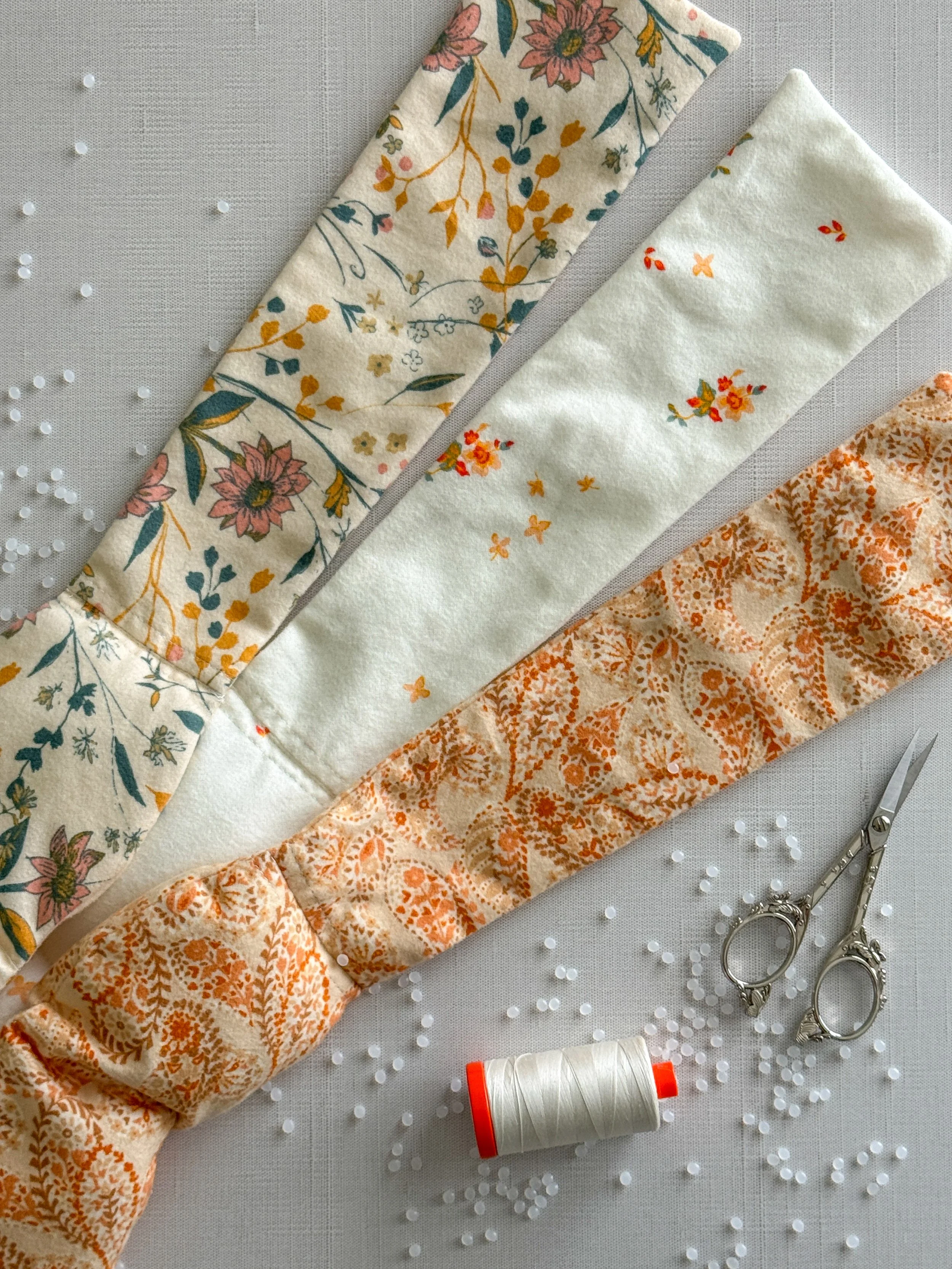 The best material to use for the Weighted Therapy Mask is Art Gallery Fabrics flannel. The double-brushed, thick flannel provides soft, cozy comfort as well as reassurance that it’s the ideal fabric to place next to your skin, thanks to its OEKO-TEX certified cotton fiber content. I made three samples using flannel prints from my Willow, Listen to Your Heart, and Tumbleweed collections. One for me, and two for gifting.